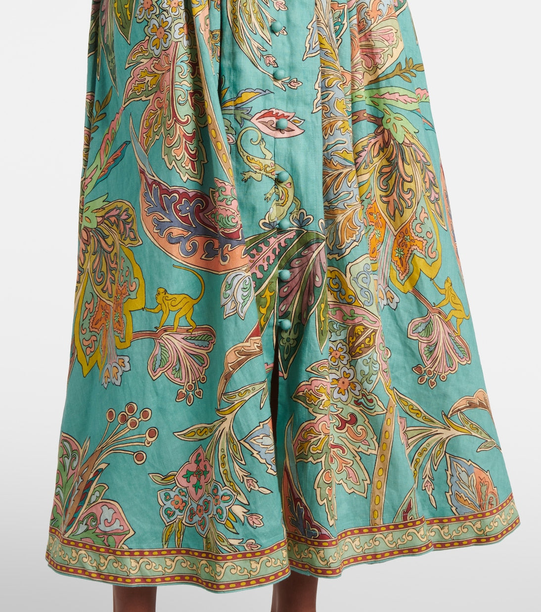 ✅Exquisite Artistic Print: The Taliqua dress is adorned with an intricate all-over print that combines floral, paisley, and playful fauna motifs. This creates a rich tapestry of visual interest that feels both luxurious and full of character. The patterns are arranged with symmetry and elegance, enhancing the overall silhouette and giving the dress an elevated artisanal vibe.